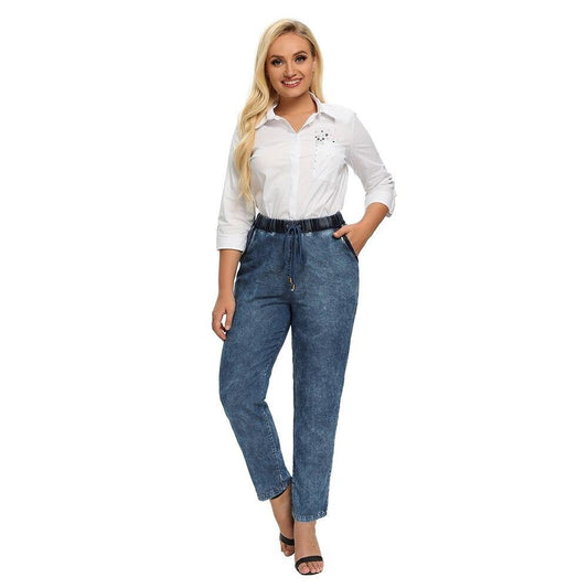 Women's Plus Size Casual Jeans High Flexibility Cotton Woven Thin Denim Trousers Softener Jeans with Elastic Waist