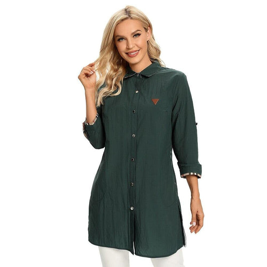 Women's Plus Size Windbreaker Mid-Length Lapel Shirt Spring And Autumn Loose Buttoned Windbreaker