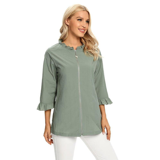 Women's Plus Size Windbreaker Mid-Length Round Neck Jacket Spring And Autumn Loose Zipper Windbreaker