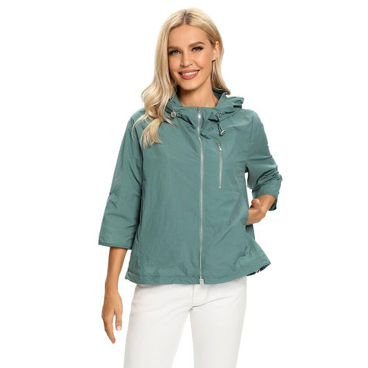 Women's Plus Size Windbreaker Short Hooded Jacket Spring And Autumn Loose Zipper Windbreaker