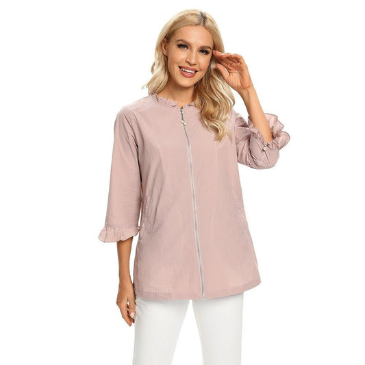 Women's Plus Size Windbreaker Short Lapel Jacket Spring And Autumn Loose Zipper Windbreaker