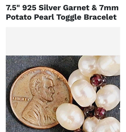Sterling silver, ruby garnets & natural sea pearls bracelet