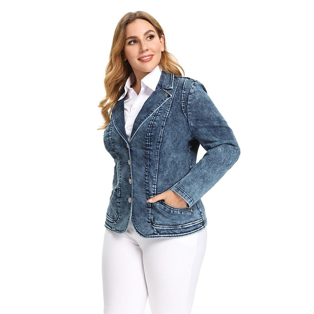 Women's Plus Size Tailored Denim Coat Cotton Knitted Busine Suit Fashion Cotton Knitted Jacket